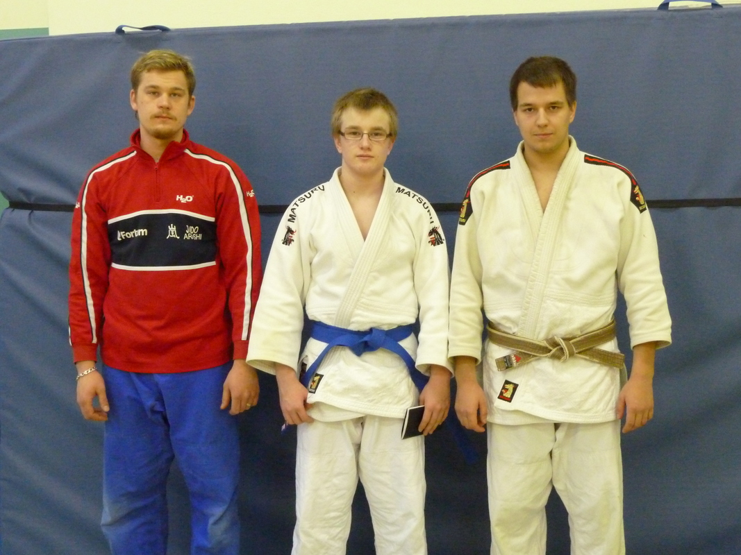 Jyrki Niemi 1.dan, Jesse Orava 2.kyu ja Joni Välimaa 1.kyu