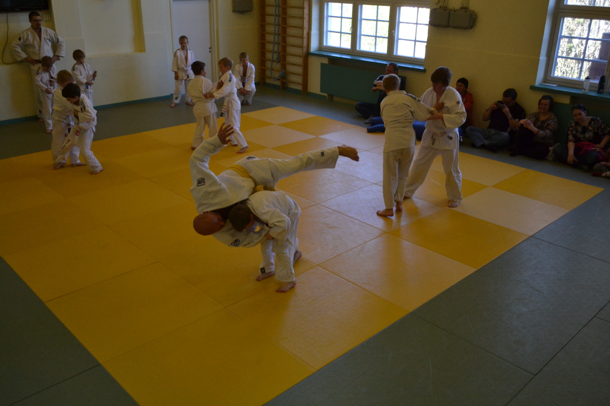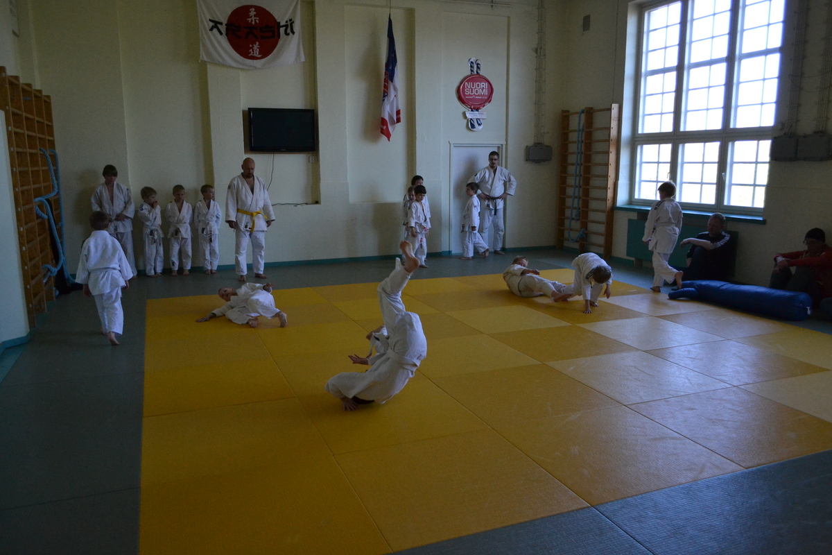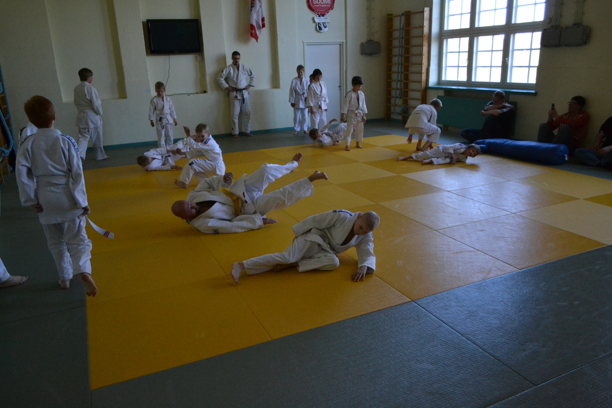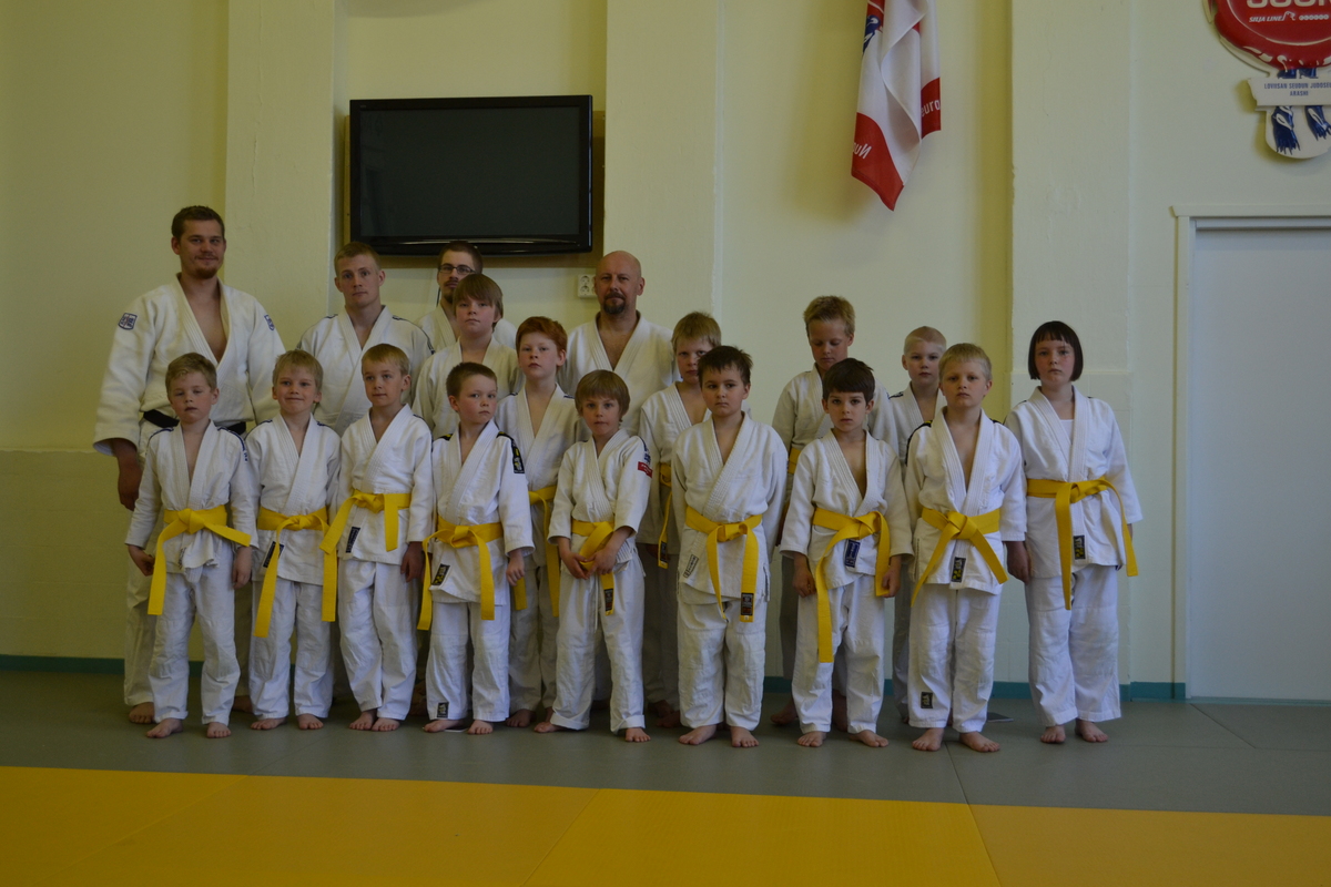 Kevätkauden viimeiset vyökokeet pidettiin 17.5. dojolla. Tilaisuuteen osallistui kaikkiaan 15 judokaa peruskurssilta, muksuista ja yksi aikuisista. Graduoinnin vastaanottivat Petja Lindström 1.dan ja Jyrki Niemi 1.dan. KELTAISEN 5.kyu vyöarvon suorittivat: Muksuryhmä