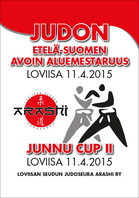 Lauantaina 11.4. kilpailtiin Junnu Cup II ja Etelä-Suomen avoimet aluemestaruuskisat Loviisan liikuntahallilla. Kilpailijoita oli kaikkiaan 308 ja otteluita kaikkiaan 434 päivän aikana 68 eri sarjassa. Arashilaiset ottelivat hienosti voittaen 4 kultaa, 4 hopeaa ja 5 prossia. Linkki kisasivuille tästä ja tuloksiin tästä. Loviisan seudun judoseura Arashi järjesti lauantaina 11.4. kahdet judokisat. Ensin oteltiin Junnu Cup II, jossa ottelijoita oli 27 eri seurasta yhteensä 201 , sarjoja 37 ja otteluita 290. Arashilaisia osallistui kaikkiaan 15. Kultaisen mitalin saivat Niko Heijari, Luca Mackintosh, Jesse Ronkainen ja Rauli Törmänen. Hopeinen mitali ripustettiin Robin Lindqvistin ja Emil Rytkösen kaulaan. Pronssiset mitalit menivät Topi Mattilalle, Konsta Terävälle ja Amelie Wallénille. Kaikki osallistujat ottelivat hienosti ja saivat uusia kokemuksia. Junnu Cup II Arashilaisten tuloksia